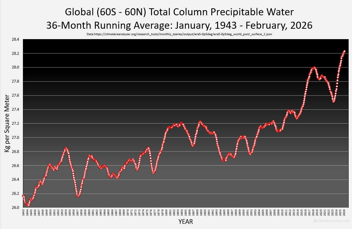 Record High 36-Month Running Average for the Total Column Precipitable Water